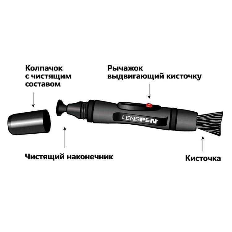 Карандаш для объективов маленького диаметра Lenspen MicroPro не царапает и не портит поверхность линз. Чистящий наконечник наполняется специальным составом из колпачка, в то время пока закрыт. Выдвижная кисточка легко удалит пыль и лишние элементы с поверхности объектива |