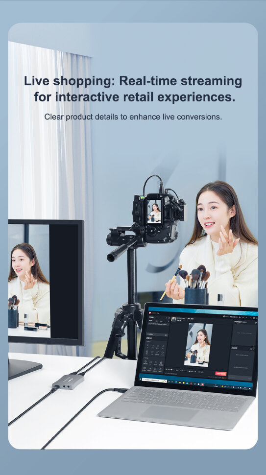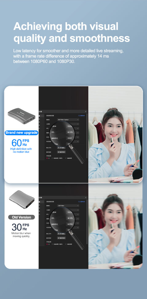 Быстрый захват видеопотокаУстройство видеозахвата BMU037 открывает новые возможности для стриминга и записи видео. Оно обеспечивает сквозную передачу видео в потрясающем качестве 4K при 60 кадрах в секунду, одновременно записывая материал в плавном и детализированном разрешении 1080P/60 по Type-C. Низкая задержка и технология 60 FPS практически устраняют размытие в движении, что критически важно для динамичных игр и трансляций, где важна каждая деталь. Благодаря высокой частоте кадров и минимальной задержке около 14 мс, ваши трансляции становятся невероятно плавными и четкими |