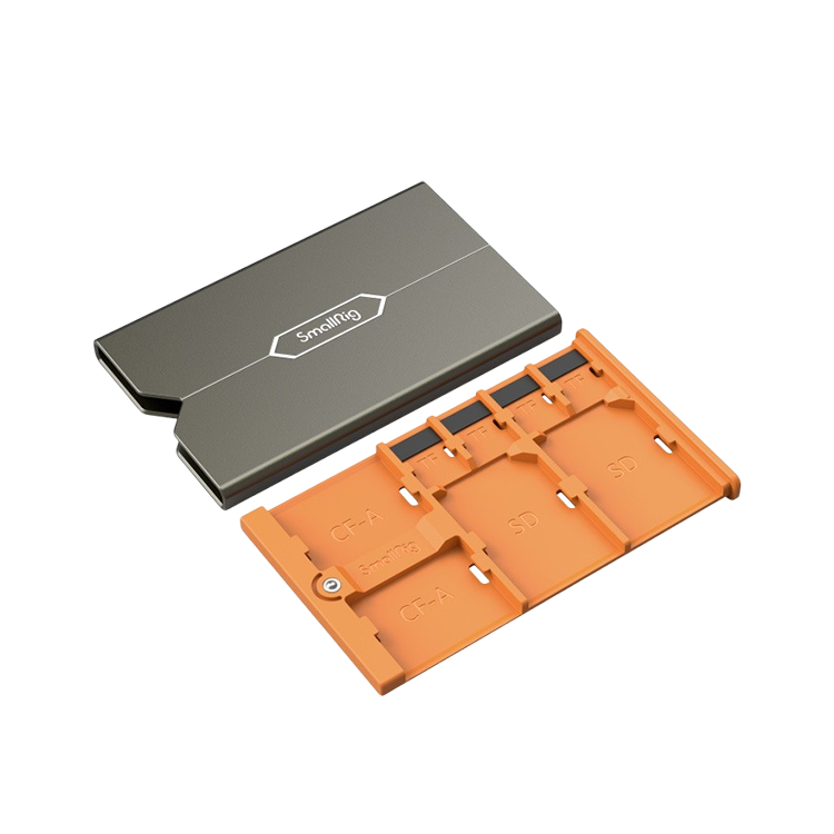 Кейс SmallRig 4107 для карт памяти выполнен из прочного алюминиевого сплава методом CNC-фрезеровки, что обеспечивает ударопрочность и защиту от царапин. Внутренние отсеки из ABS+PC надёжно хранят носители: 2 слота для CFexpress Type-A, 2 для SD и 4 для Micro SD. Удобная выдвижная конструкция и подписанные слоты позволяют быстро извлекать нужную карту без путаницы. Компактный и стильный дизайн делает кейс идеальным спутником |
