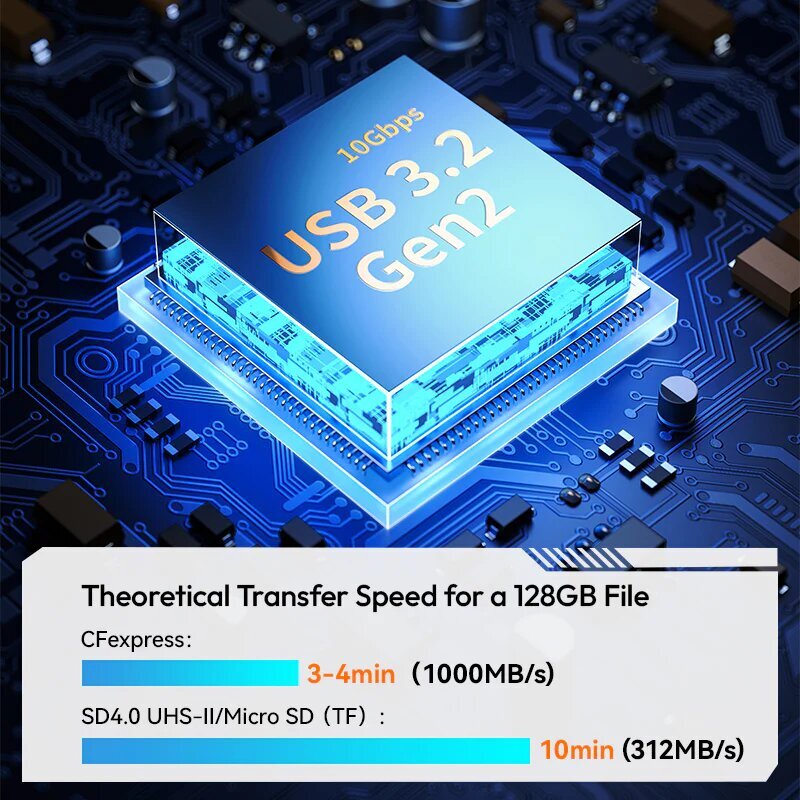 Кейс Ulanzi MCR-01 сочетает в себе высокоскоростной кардридер и удобный кейс для хранения, что позволяет поддерживать порядок и оперативно обрабатывать файлы. Оснащённый чипом USB 3.2 Gen2, кардридер обеспечивает скорость передачи данных до 10 Гбит/с, поддерживая карты CFexpress Type-A (до 1000 МБ/с) и SD 4.0 UHS-II (до 312 МБ/с) |