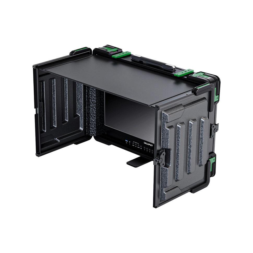 Кейс для безопасного использования и хранения монитора Lilliput UQ23. Створки защищающие дисплей трансформируются в солнцезащитный козырек, обеспечивающий хорошую видимость в условиях яркого света |