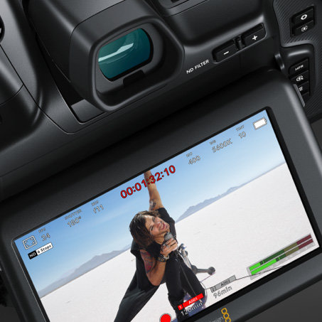 Совместимость с кино- и фотообъективамиКамера оснащена байонетом EF соответственно. Подойдет не только оптика, совместимая с DSLR, URSA Mini Pro и даже с самой первой моделью Blackmagic Cinema Camera, но и другие широко распространенные фотообъективы, которые дают большую свободу творчества и позволяют получать качественное изображение кинематографического уровня. Корректировку фокуса и диафрагмы можно выполнять как с помощью кнопок на камере, так и на сенсорном экране |