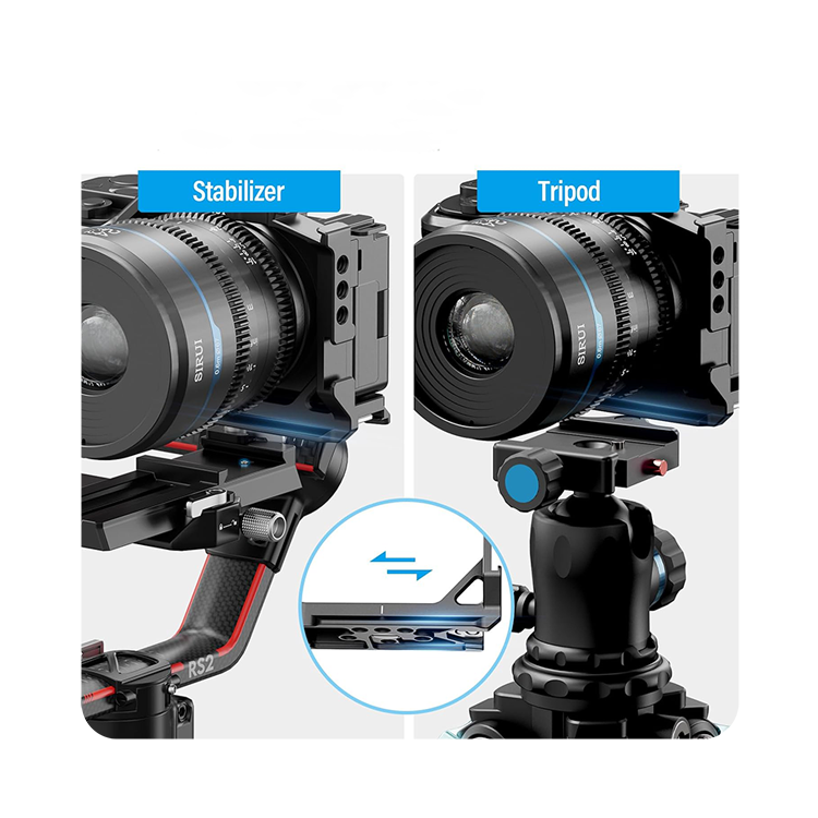 Встроенная быстросъемная площадка типа Arca Swiss находится в нижней части корпуса. Она может быть установлена непосредственно на штатив или стабилизатор с аналогичным зажимом, обеспечивая быстрое переключение между различным оборудованием |