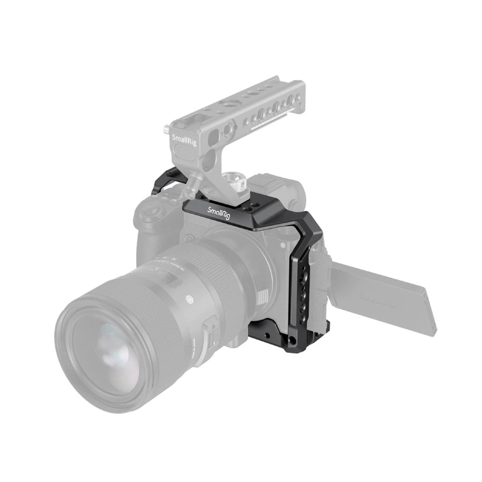 Профессиональная клетка для Panasonic S5. Представленная модель предназначена для защиты камеры и крепления дополнительных аксессуаров и устройств. Производителем предусмотрено несколько резьбовых отверстий 1/4" и 3/8", а также крепление на холодный башмак и рельсы NATO |