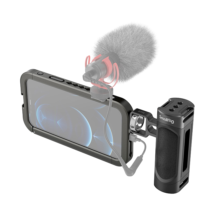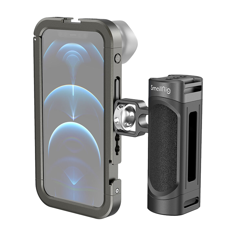 Комплект для профессиональной съемки на iPhone 12 Pro. В набор входит клетка и боковая рукоятка для более комфортного захвата |