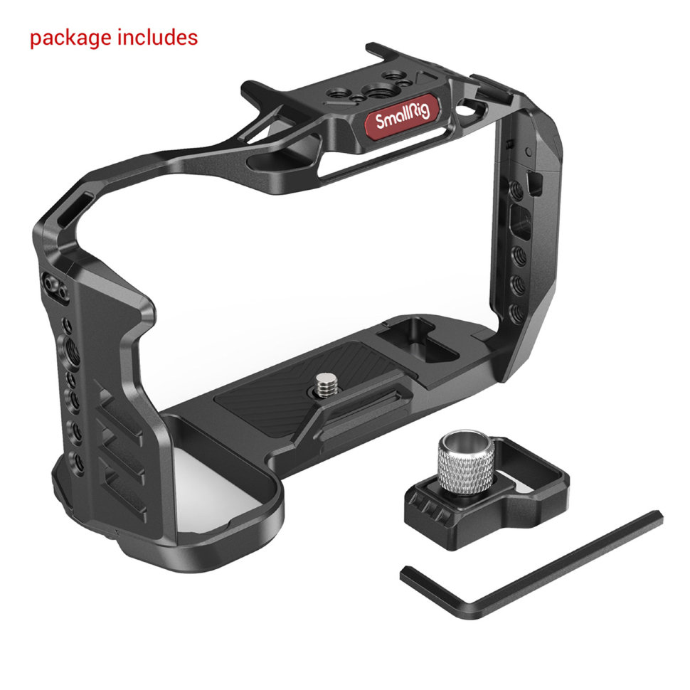 Облегченная версия клетки для камер Sony A7S III. Поставляется в комплекте с фиксатором для HDMI кабеля. Конструкция имеет резьбовые отверстия 1/4" и 3/8" и крепление на холодный башмак. Дополнительно предусмотрены рельсы NATO. На дне клетки имеется отвертка для быстрой и удобной сборки |