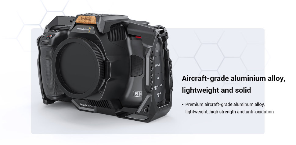 Клетка разработана специально для камеры BMPCC 6K Pro и позволяет значительно расширить функционал и удобство съёмочного процесса. Множество отверстий для установки дополнительного оснащения помогут раскрыть ваш творческий потенциал |