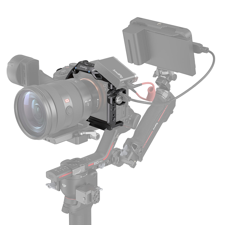 Имеет множество креплений для установки аксессуаров. Нижняя часть клетки имеет профиль Arca Swiss, а значит совместима с подходящими штативными головами и стабилизатором DJI RS2/RSC2/RS3/RS3 Pro |