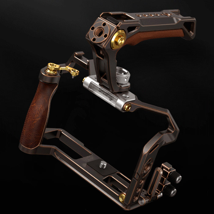 Клетка модели Retro в потрясающем винтажном дизайне отсылающей к эпохе зарождения кино. Особенно колоритно выглядит "затычка" для горячего башмака с жидкостным уровнем и кожаная рукоятка в стиле стимпанк |