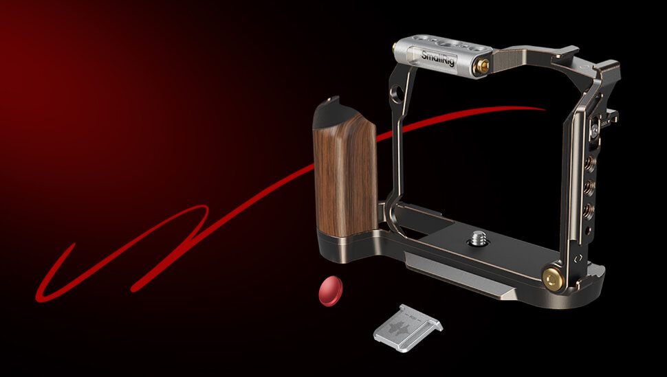 Клетка в стиле RetroКлетка в винтажном стиле для камеры Fujifilm X-T50, выполнена из алюминиевого сплава с деревянной ручкой, что обеспечивает улучшенную защиту и усиленную поддержку захвата. Крепление к камере осуществляется посредством встроенного винта 1/4". Силиконовые подкладки предотвращают появление царапин на корпусе камеры |