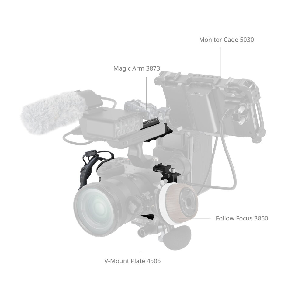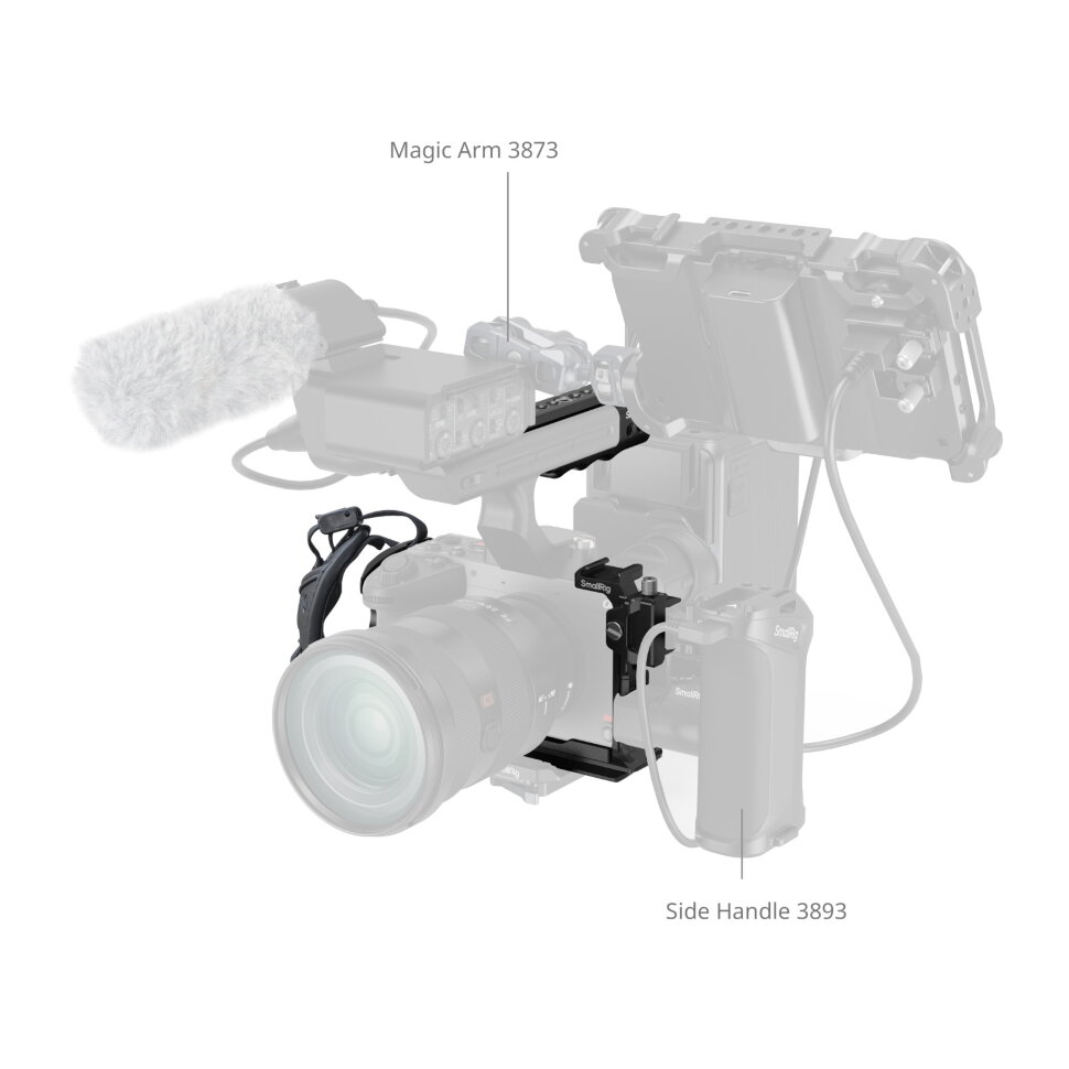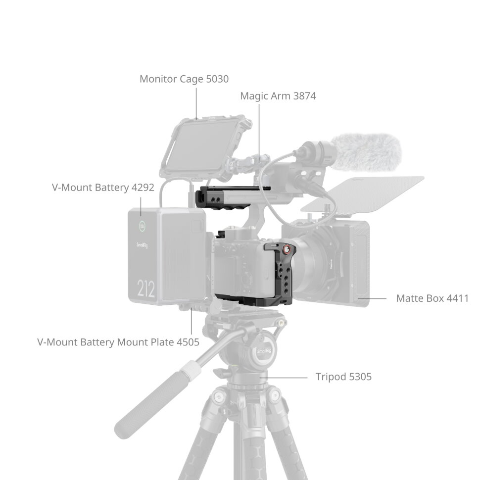Интеллектуальная интеграция и эргономикаСъёмная верхняя пластина с NATO-рейлом совместима с фирменной ручкой Sony XLR и вращающейся ручкой SmallRig, сохраняя функциональность видоискателя. Горизонтальное крепление холодный башмак предназначено для микрофона или светодиодной панели, а разъём QD в основании позволяет фиксировать плечевой ремень. Магнитный шестигранный ключ интегрирован в конструкцию для оперативной сборки, а зажим HDMI-кабеля предотвращает его случайное отсоединение. Множество точек крепления включают резьбовые отверстия и установочные точки ARRI |