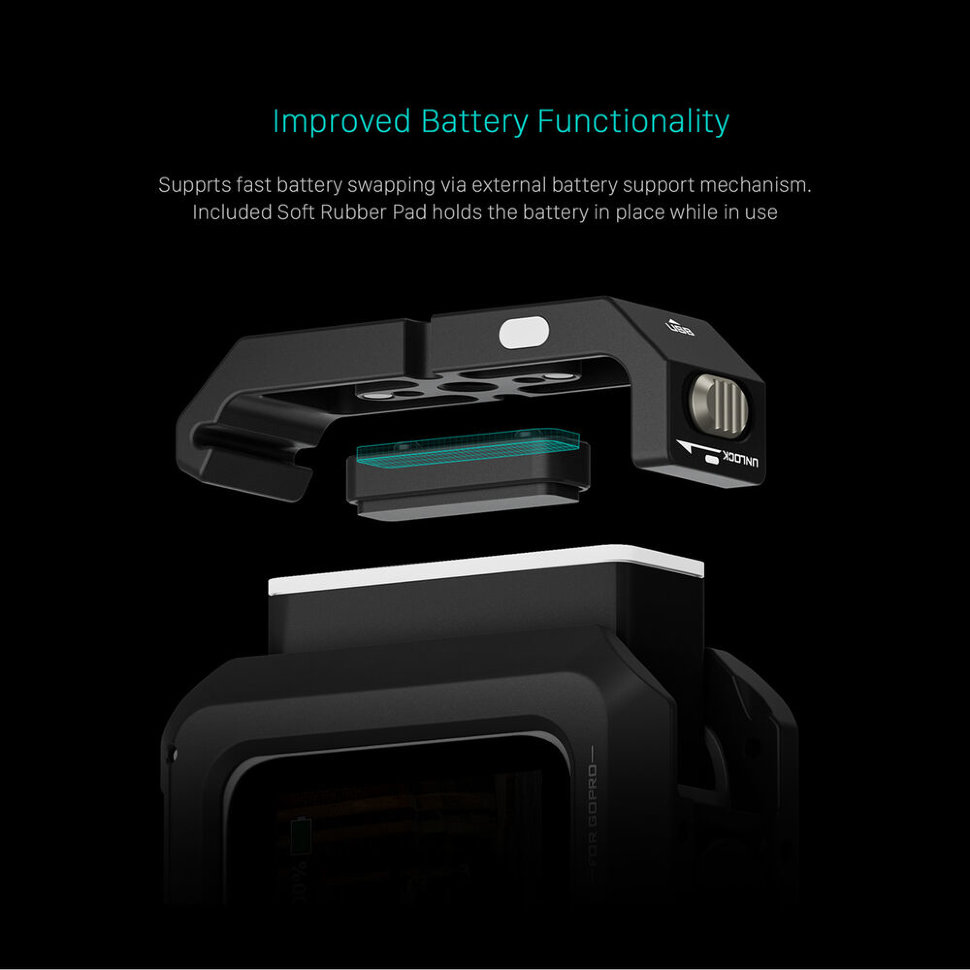 Имеет крепление 1/4" с фиксирующими штифтами, а также холодный башмак. Может быть установлена на монопод или кронштейн в вертикальном и горизонтальном положении |