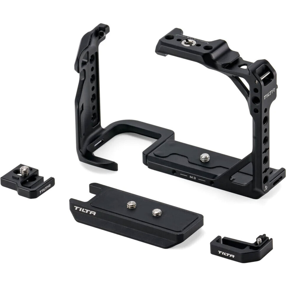 Защита и универсальность крепленийКлетка Tilta изготовлена из алюминиевого сплава и нержавеющей стали, обеспечивая защиту корпуса камеры при весе всего 187 г. Конструкция сохраняет полный доступ ко всем кнопкам, разъемам и батарейному отсеку, включая съемную ручку для быстрой замены аккумулятора. Интегрированные точки крепления: холодный башмак, резьбы 1/4", 3/8" (с переходником) и M3 с позиционирующими штифтами — позволяют устанавливать мониторы, микрофоны, рукоятки и световое оборудование без конфликтов |