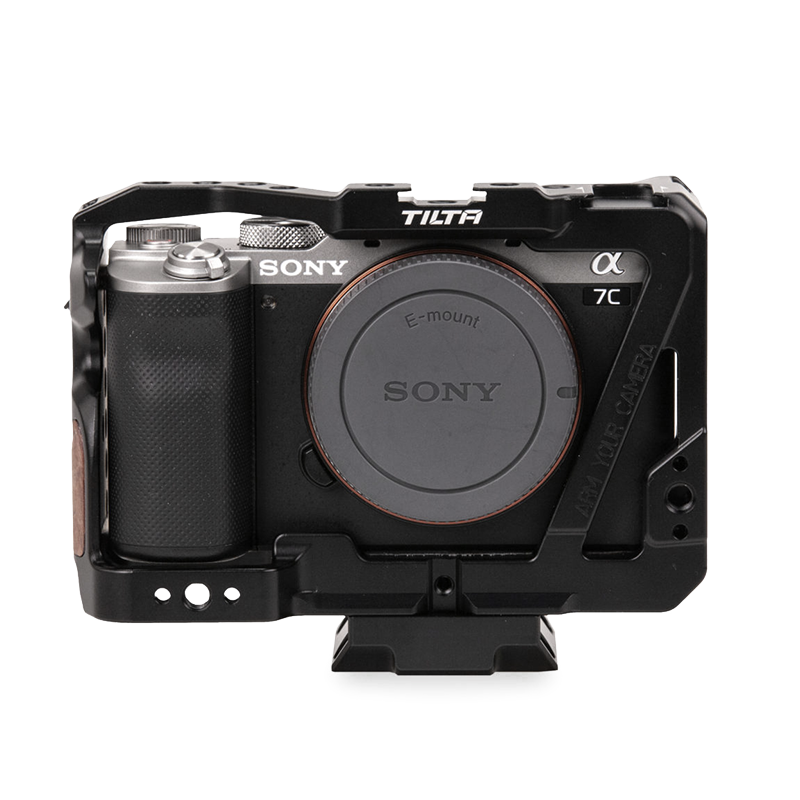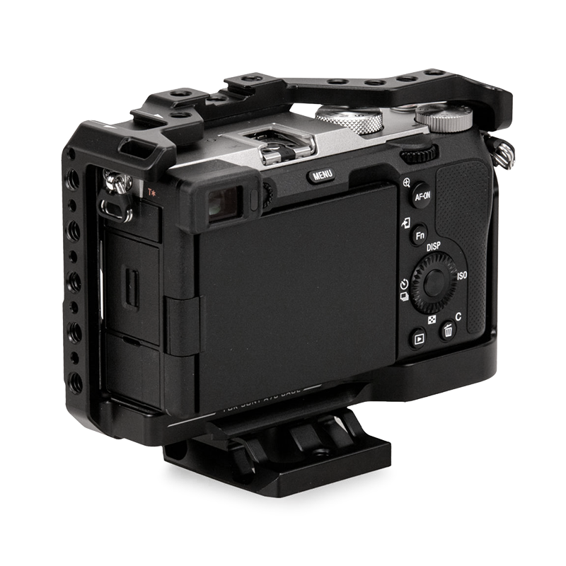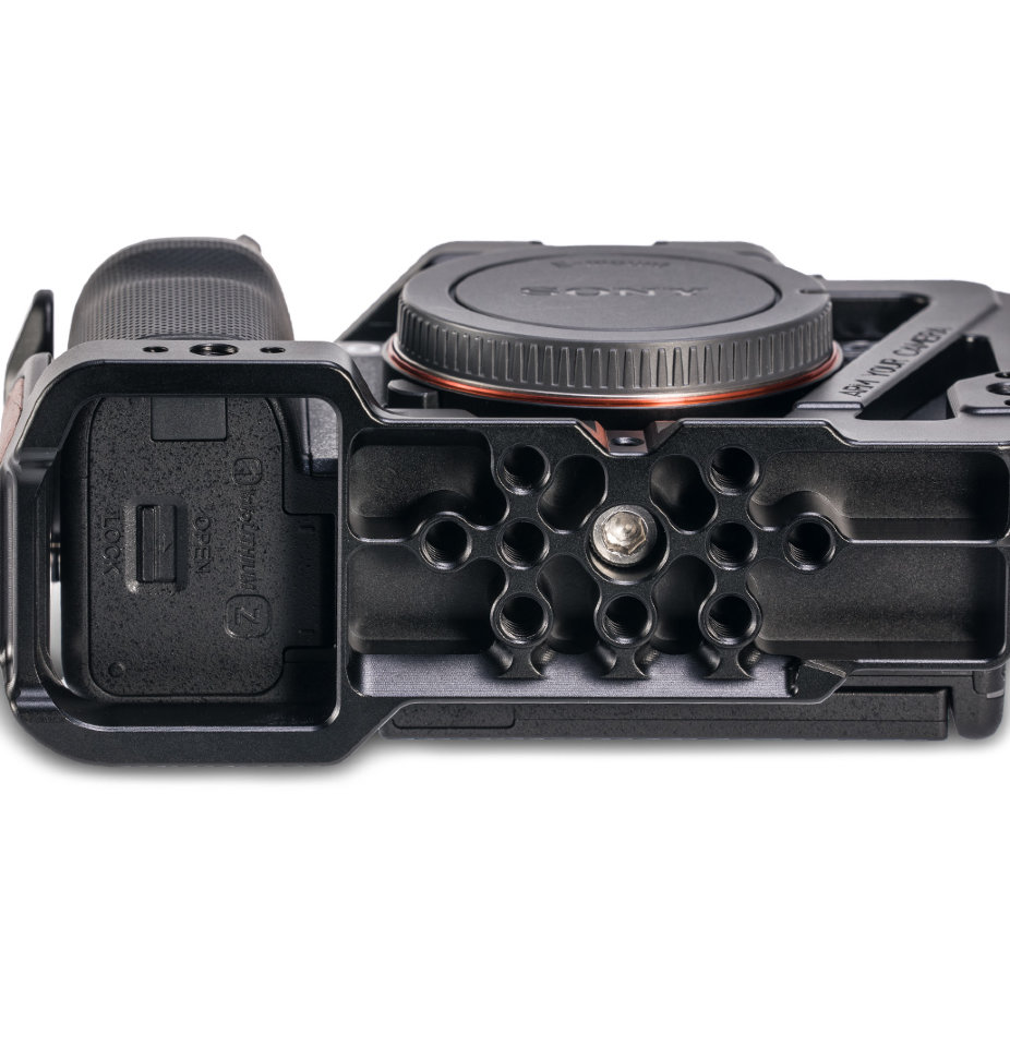 Клетка для камеры Sony a7C позволяет оснастить устройство дополнительными приспособлениями для повышения качества и комфорта работы. Множество отверстий 1/4" и холодный башмак открывают простор для вариативных сборок |