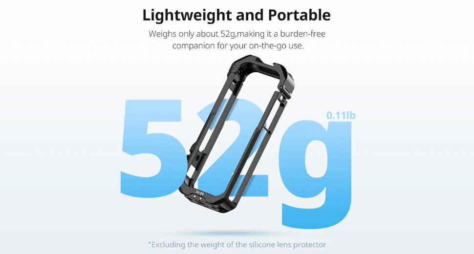Компактность и легкостьКлетка весит всего 52 г и не создает лишней нагрузки при транспортировке и во время использования вместе с камерой. Силиконовые вставки помогает предохранить оборудования от повреждений, а также от случайного выскальзывания |
