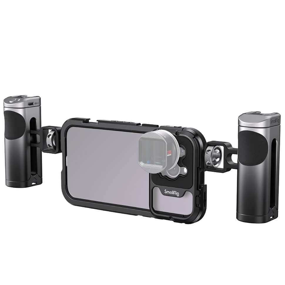 Профессиональный комплект из клетки для смартфона и двух боковых рукояток. Предусмотрена возможность..
