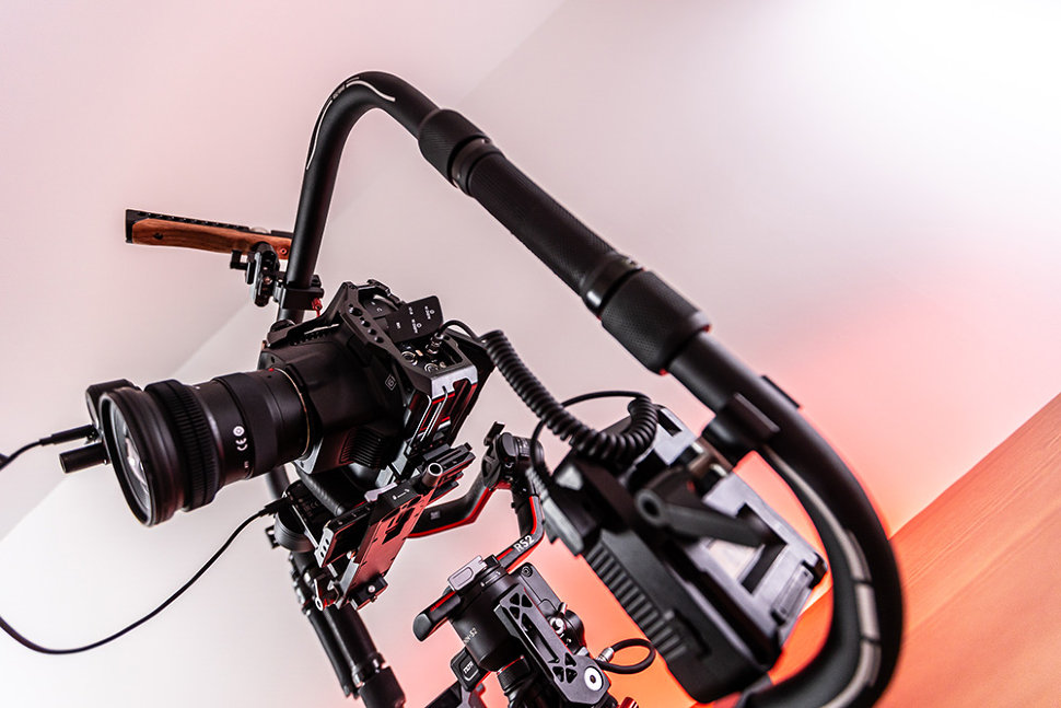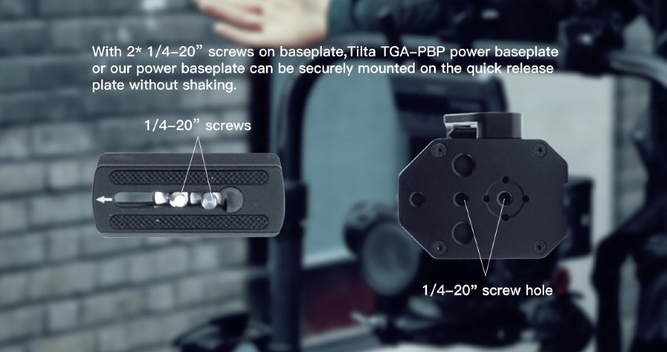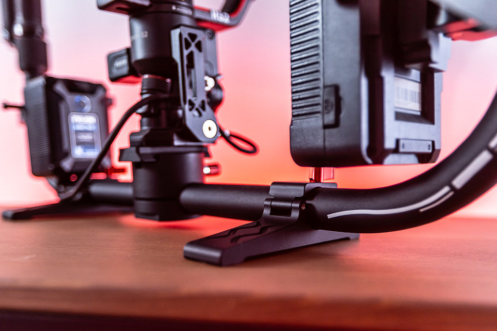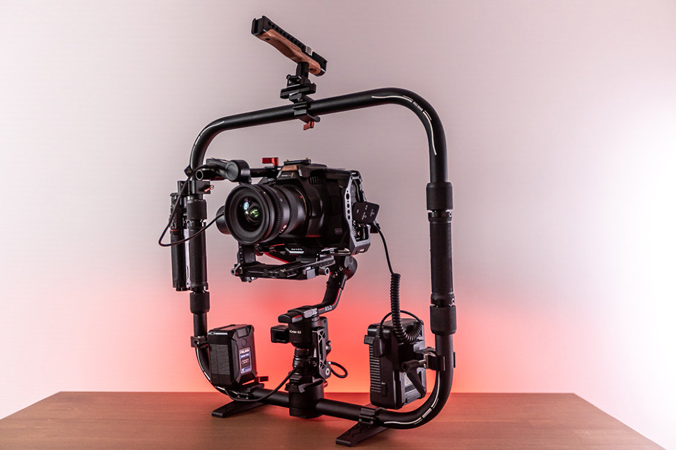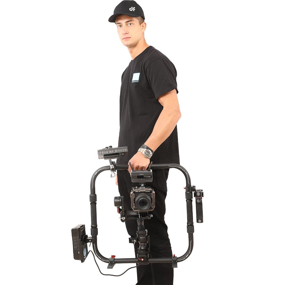 Комплектация PRO имеет базу для питания подвеса. В таком случае стабилизатор устанавливается без рукоятки, а энергия поступает от внешних источников питания, например батареи V-mount |