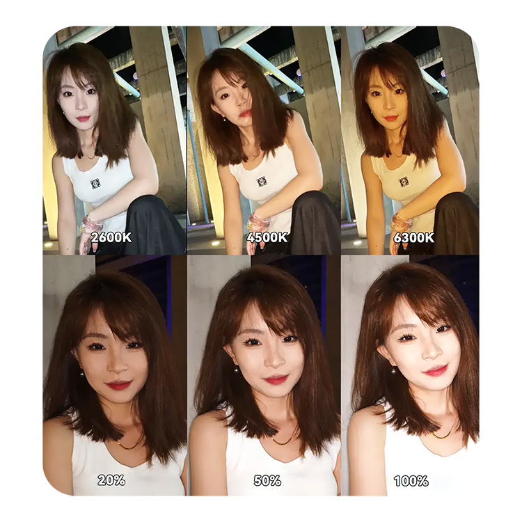 Режимы светаАппарат предлагает три уровня яркости и три уровня цветовой температуры, что позволяет легко адаптировать освещение под любые условия съемки. С помощью простого интерфейса управления вы можете выбирать между теплым, нейтральным и холодным светом, чтобы добиться нужного эффекта на фотографии или видео. Высокая яркость в 300 лк (про 0.6м) обеспечивает четкое и яркое освещение, идеально подходящее как для портретной съемки, так и для макросъемки мелких объектов |