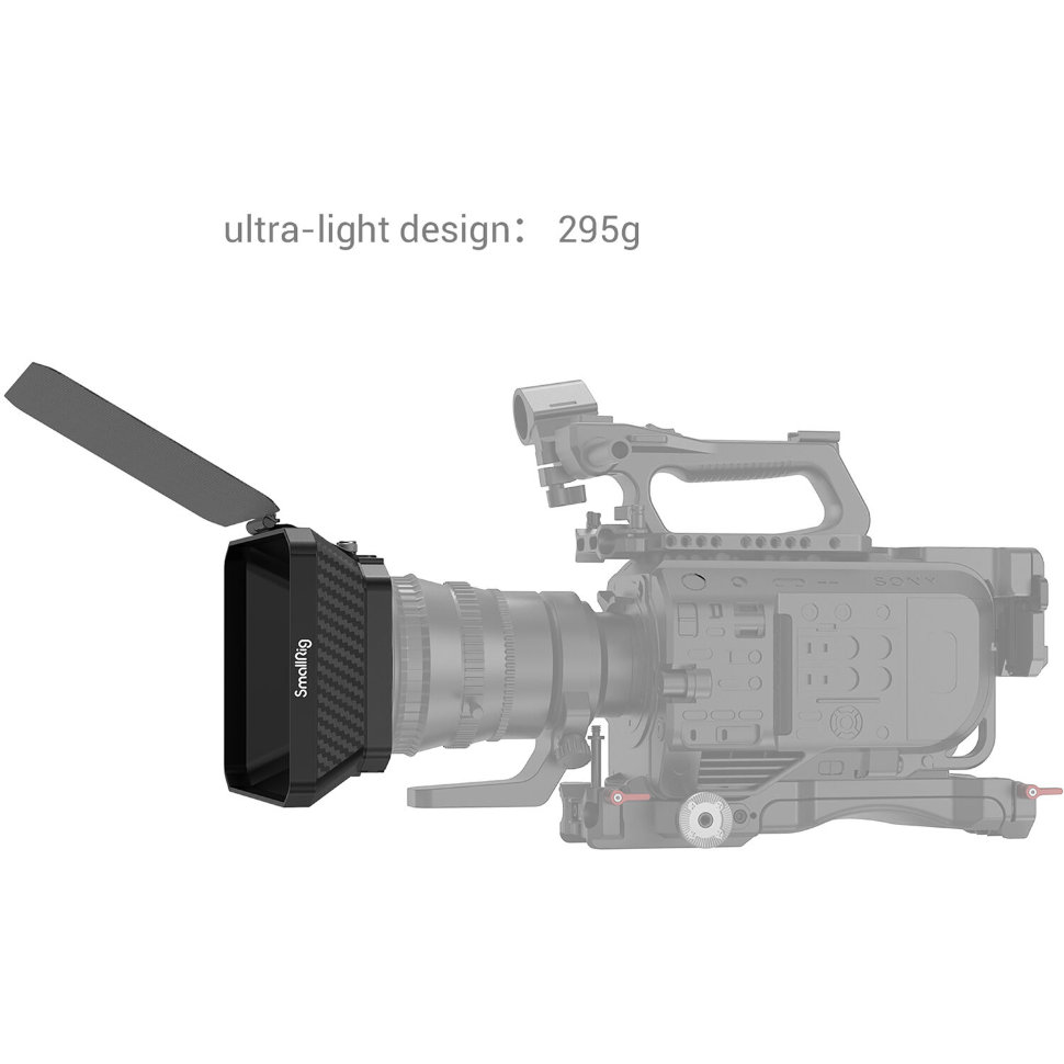 SmallRig MATTE BOX 2660 изготовлен из прочного и легкого материала. Корпус из алюминиевого сплава, а шторка из углеродного волокна. Компендиум имеет антибликовое покрытие, что предотвращает появление в кадре отражения от сильных источников света  |