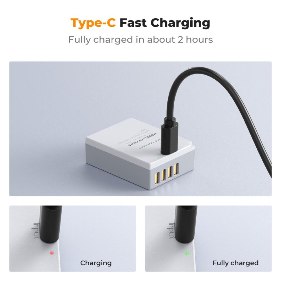 Полностью декодированный аккумулятор NP-W126s для питания камеры Fujifilm со встроенным портом Type-C для зарядки без специального зарядного устройства. Может быть подключен к power bank, сетевому адаптеру или автомобильной зарядке |