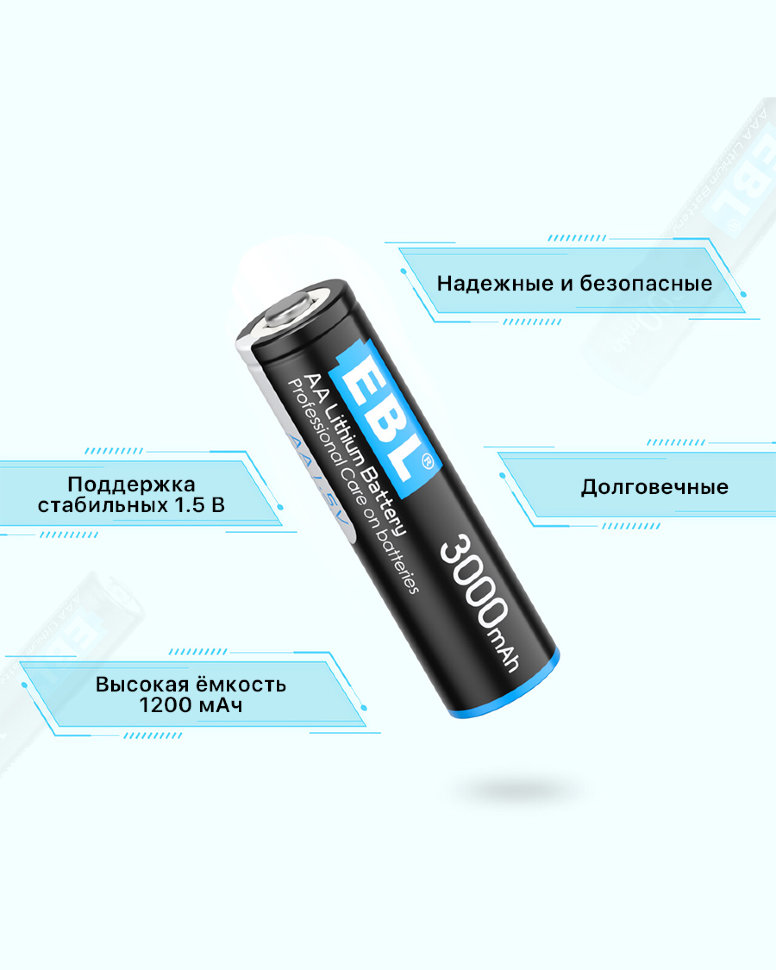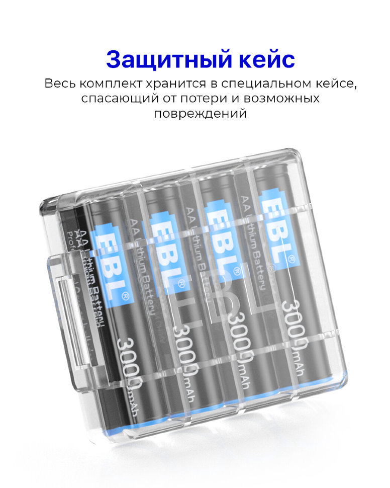 Комплект батареек EBL Lithium AA 3000mAh (4шт)