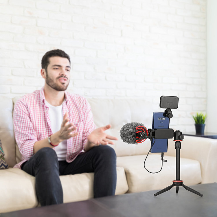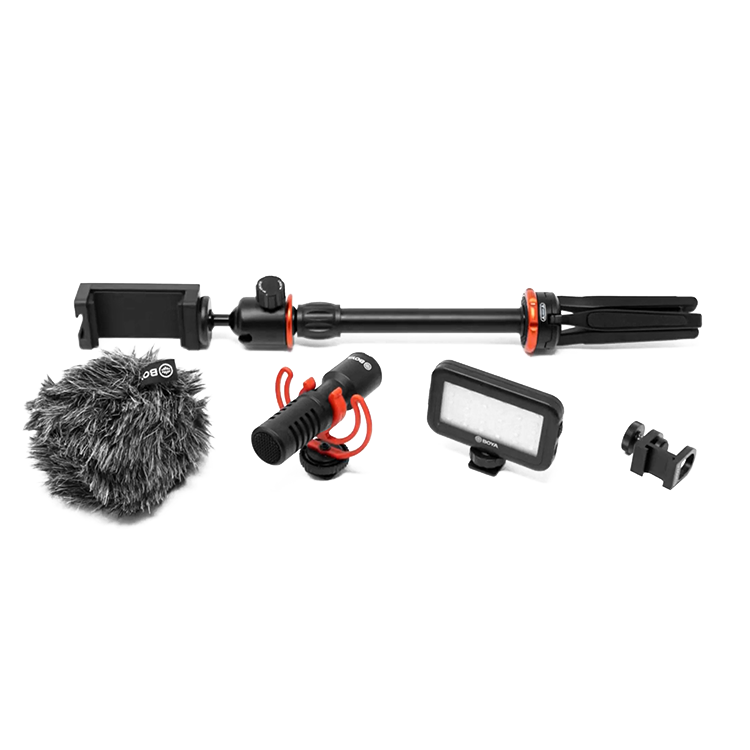 Комплект для качественной съемки на смартфон. Набор состоит из микрофона, осветителя, штатива с шаровой головкой и держателя смартфона. Для использования не требуется каких-либо дополнительных аксессуаров, он совместим с большинством мобильных устройств. Микрофон гарантирует отличную аудиозапись без искажений и дефектов |