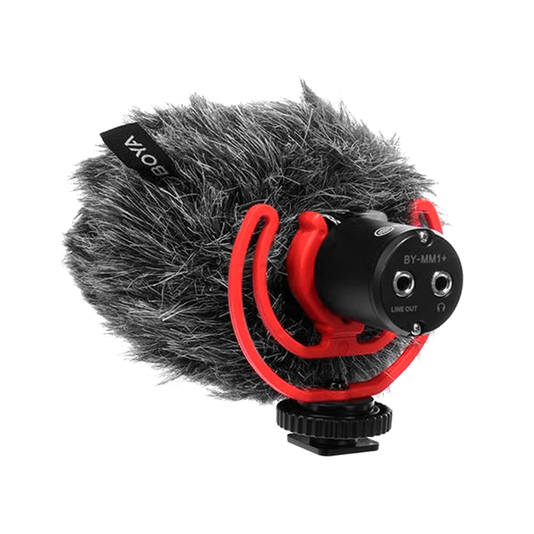 Микрофон BY-MM1+ имеет кардиоидную диаграмму и позволяет записывать звук из зоны в которую направлен. К нему прилагается специализированное крепление Rycote, которое гасит колебания, а ворсовая ветрозащита спасет от шума ветра. Имеет выход для наушников, благодаря чему вы будете слышать то, что записываете |