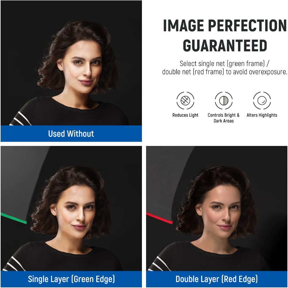 Комплект из 5 флагов, помогающих корректировать освещение от осветителей. Каждый из них имеет собственный цвет рамок и назначение. В комплект также входят сетки круглой и прямоугольной формы, необходимые для точного управления световым потоком и фокусировки его на малых участках. Они идеально подходят для создания акцентов на небольших деталях, таких как предметы или текстуры |