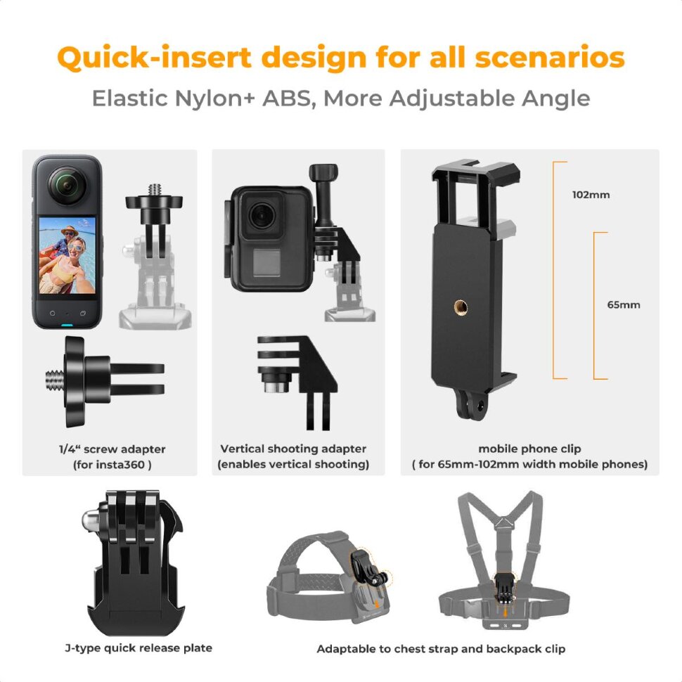 Комплект креплений K&F Concept Accessories Set для POV съёмки на экшн-камеру и смартфон