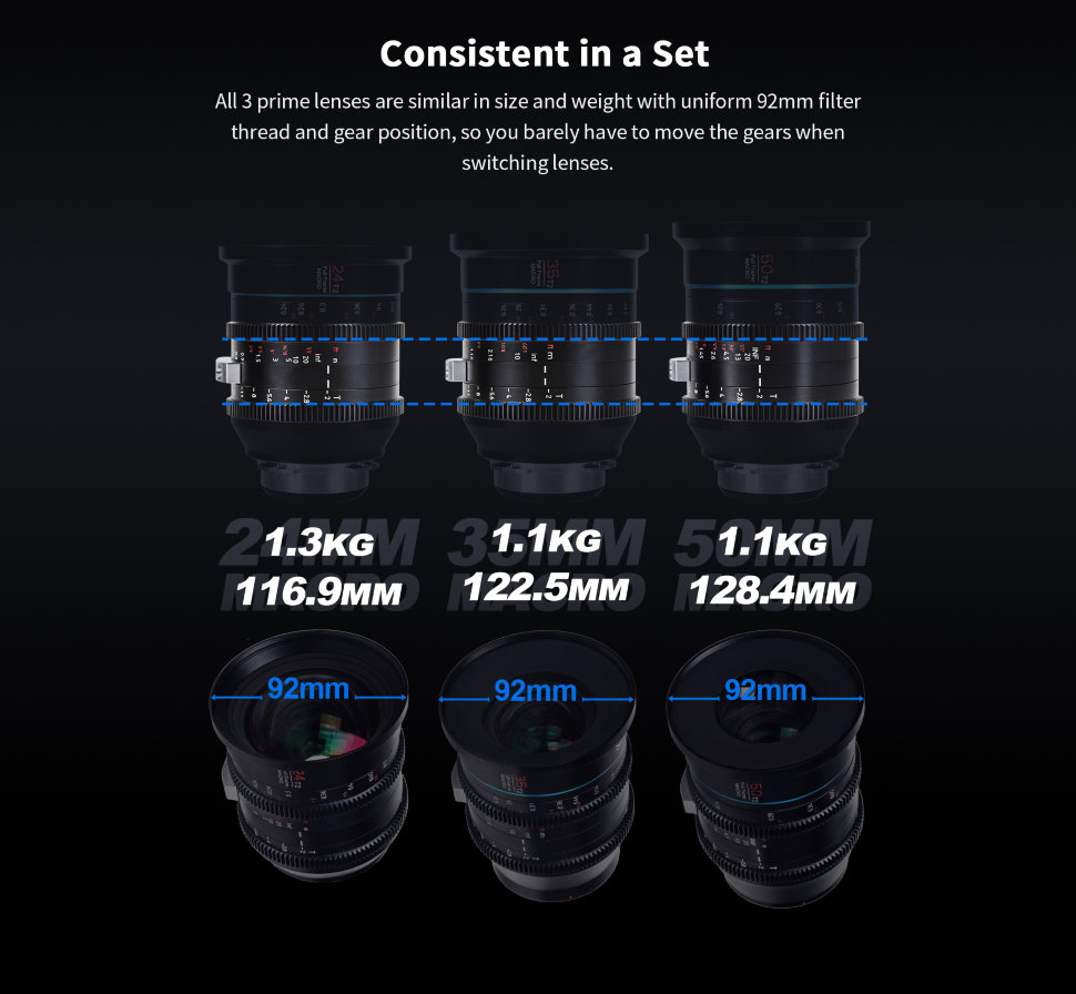 Полный комплектНабор из трёх кинообъективов с фокусным расстоянием 24, 35 и 50 мм для одного вида байонета. Предназначены для макросъёмки на камеру с большим сенсором и Full-Frame. Все три модели имеют одинаковую базовую часть конструкции, что делает их замену максимально простой, не требующей настройки рига или дополнительных аксессуаров |