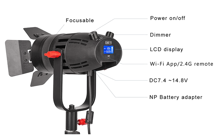 | При помощи кашетирующих шторок вы можете управлять объёмом светового потока прямо во время съёмочного процесса. Прожектор оснащен линзой Френеля, что позволяет фокусировать и регулировать размер светового пятна, добиться уменьшения сферической аберрации, а также сократить размеры и вес оборудования |