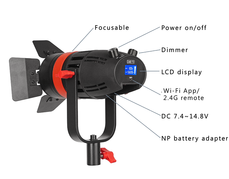 | При помощи кашетирующих шторок вы можете управлять объёмом светового потока прямо во время съёмочного процесса. Прожектор оснащен линзой Френеля, что позволяет фокусировать и регулировать размер светового пятна, добиться уменьшения сферической аберрации, а также сократить размеры и вес оборудования |