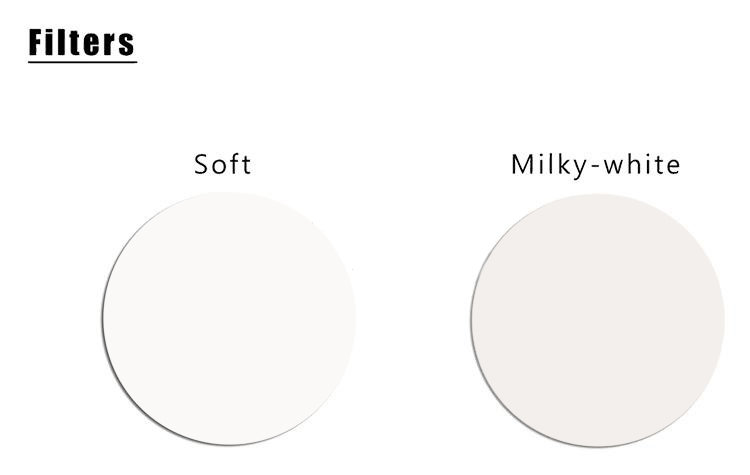 | В комплект входят два фильтра - Soft и Milky-White, устанавливаемые перед линзой. Они позволят сделать свет более мягким и спокойным, выровнять тон и цвет |