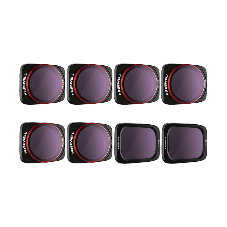 Набор из восьми фильтров для DJI Mavic Air 2S. С помощью нейтральных и нейтрально-поляризационных фильтров вы сможете снимать с необходимыми настройками диафрагмы, подбирая модель под актуальные погодные условия, а поляризационный позволит избавиться от нежелательных бликов и отражений |