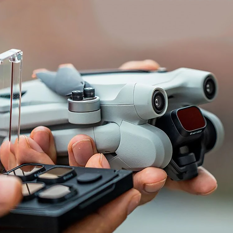 Каждый из светофильтров характеризуется легким весом, благодаря чему отсутствует негативное воздействие на подвес дрона. Для удобного хранения предусмотрен кейс |
