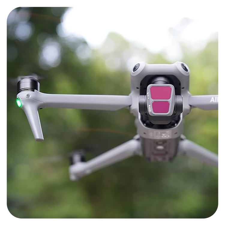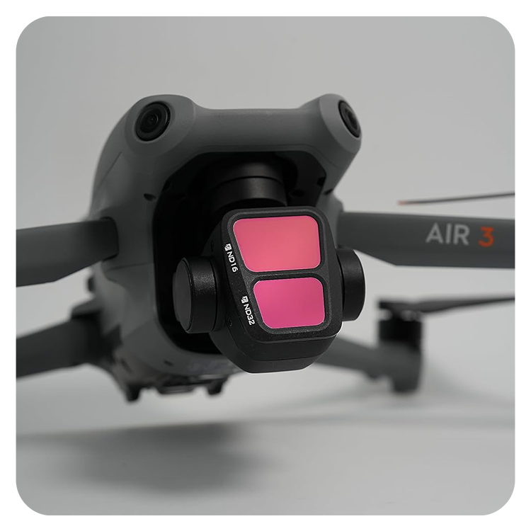 Набор из сдвоенных ND фильтров, тщательно откалиброванных для камер дрона DJI Air 3 с фокусными расстояниями 70 мм и 24 мм, и гарантирующих стабильное качество экспозиции. Благодаря отсутствию необходимости постоянно регулировать диафрагму во время полета, вы можете сосредоточиться на съемке идеального кадра |