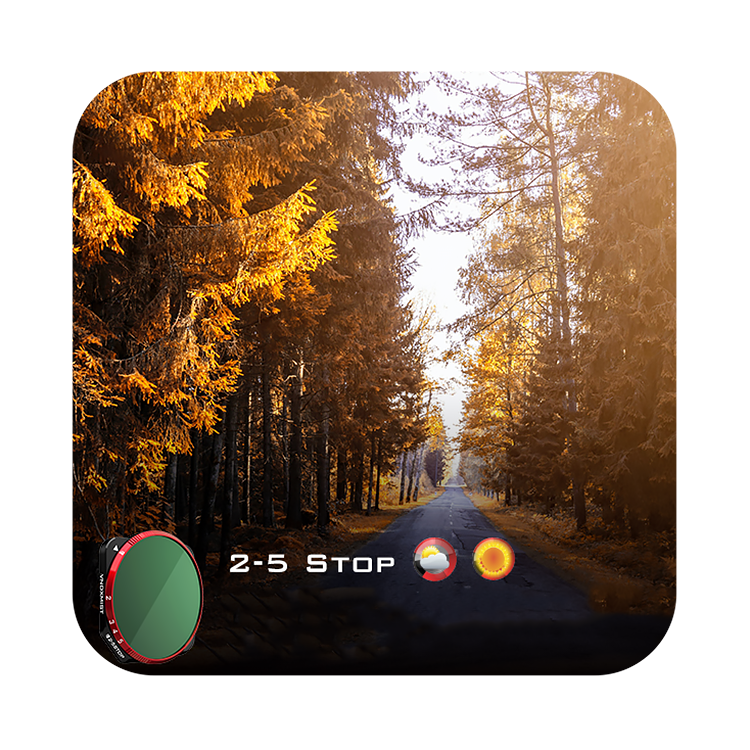 Набор из двух нейтральных регулируемых светофильтров для камеры дрона DJI Mavic 3 и Mavic 3 Cine. С их помощью можно выставить требуемые значения выдержки в условиях яркого освещения. Эффект Mist добавляет качественное размытие источников света, создавая атмосферную дымку |