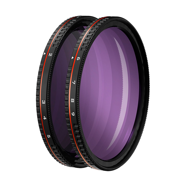 В комплект входит два фильтра с регулируемой плотностью от 2 до 5 и от 6 до 9 шагов, что равнозначно плотности от 4 до 32 и от 64 до 512 соответственно, что позволяет работать при любой яркости. С его помощью вы сможете снизить количество поступаемого на матрицу света, что позволяет снимать с определенными настройками выдержки и диафрагмы |