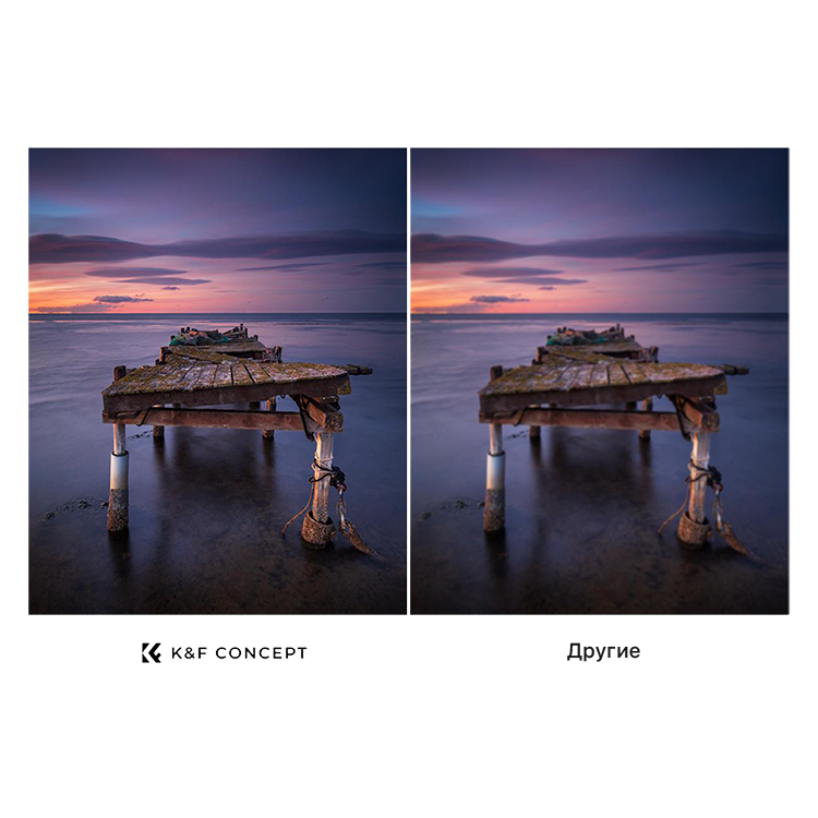 Комплект из двух светофильтров с возможностью одновременной установки благодаря внутренней резьбе. Использование оптического стекла и 28 слоёв нанопокрытия обеспечивают четкую картинку, что подходит для съёмки в формате 8K. К тому же линзы имеют гидрофобную поверхность, отталкивающую воду и устойчивы к царапинам |