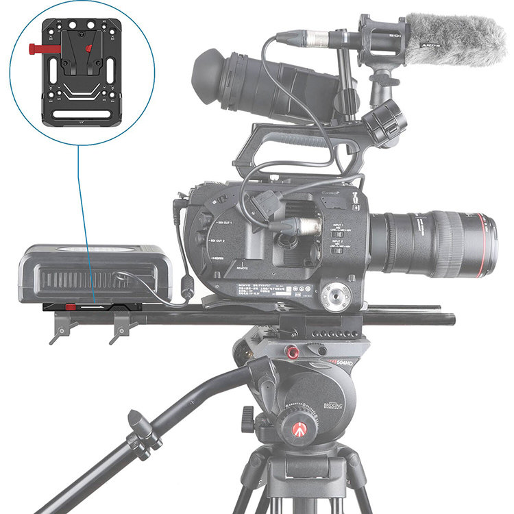 Специальная батарейная пластина с креплением для аккумуляторов V Mount. Дополнительно устройство оснащено механизмом быстрой фиксации аккумуляторной батареи с соответствующим креплением |