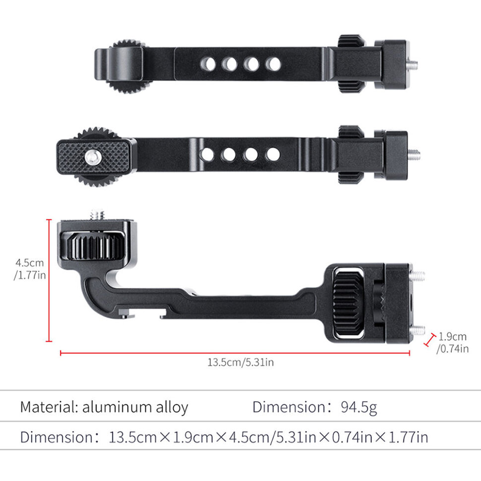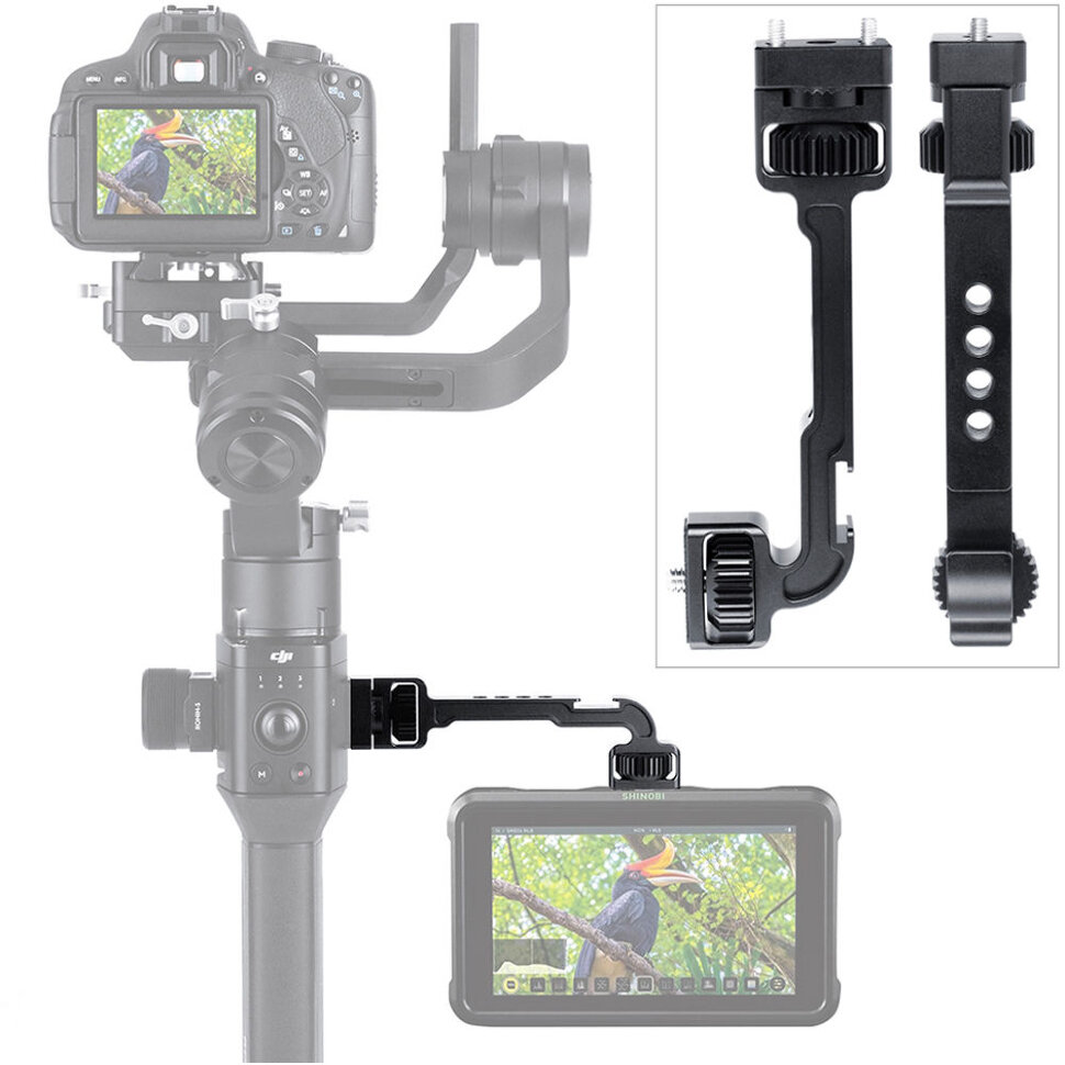 Кронштейн DigitalFoto DH11 расширяет возможности стабилизатора DJI Ronin-S, позволяя закрепить монитор и LED-светильник одновременно. Совместимый с системой ARRI, он обеспечивает плавный поворот монитора на 360°, адаптируя угол обзора под любые условия съемки. На корпусе расположены 4 резьбовых отверстия 6,35 мм (1/4"-20) для подключения микрофонов, передатчиков или дополнительных аксессуаров, а холодный башмак и отдельный винт 6,35 мм предназначены для фиксации светового оборудования и экранов. Легкая алюминиевая конструкция сохраняет баланс стабилизатора, превращая Ronin-S в универсальную платформу для кино, репортажей или студийной работы