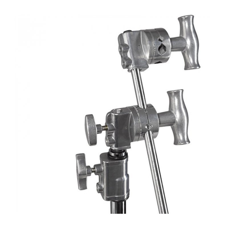 Кронштейн для установки осветителей и прочего студийного оборудования на стойку. Наличие специального роликового зажима обеспечивает прочность и надежность крепления. |