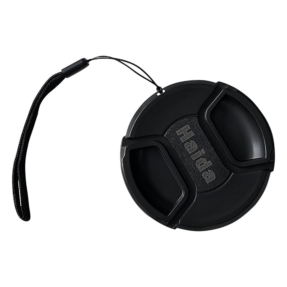 Крышка для объектива Haida Snap-on Lens Cap изготовлена из ударопрочного АБС-пластика, обеспечивая защиту фронтального элемента объектива от пыли, царапин и механических повреждений. Конструкция с центральным пружинным механизмом позволяет зафиксировать крышку одним нажатием. Крышка оснащена отверстием для крепления страховочного шнура (в комплект не входит), предотвращающего потерю аксессуара. Для корректного подбора необходимо определить диаметр резьбы объектива, обозначенный символом "Φ" на оправе