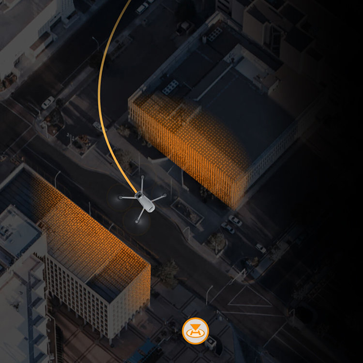 Функция возврата домой Advanced RTHТолько когда дрон вернется к вам в целости и сохранности будет завершен день съемок. К исходной точке он может вернуться по вашей инициативе или в случае потери сигнала. При этом на обратном пути Mavic 3 прокладывает оптимальный маршрут домой, избегая препятствий |
