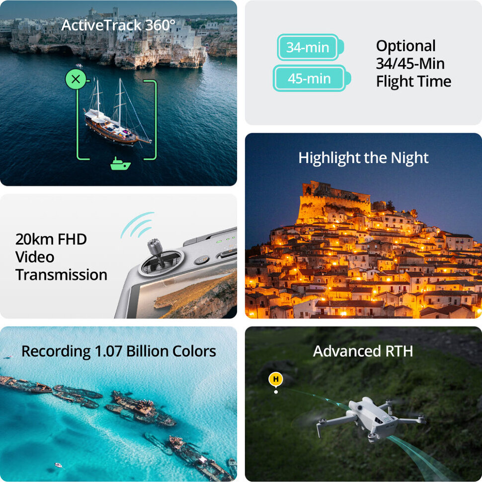 Усовершенствованные интеллектуальные режимы съемкиMini 4 Pro предлагает множество интеллектуальных режимов для создания профессиональных кадров без особых усилий. Например, система FocusTrack позволяет использовать расширенные возможности ActiveTrack с новой функцией Trace Mode, которая поддерживает планирование маршрута. Режим MasterShots выполняет сложные маневры автоматически, а Hyperlapse позволяет создавать впечатляющие таймлапсы. Также дрон предлагает несколько режимов панорамной съемки и быстрой съемки QuickShot, таких, как Dronie, Helix и Boomerang, что делает Mini 4 Pro настоящим инструментом для творческих пилотов любого уровня |