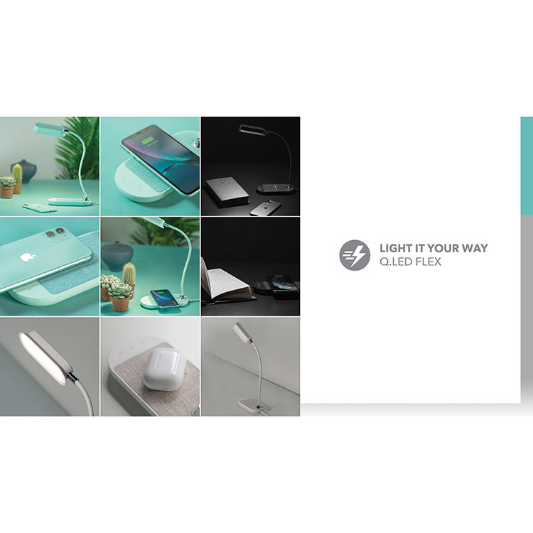 Настольная лампаНастольная лампа Q.LED Flex Desk Lamp – важный аксессуар для вашего рабочего стола. Регулировка угла наклона лампы позволяет оптимально осветить рабочее пространство |