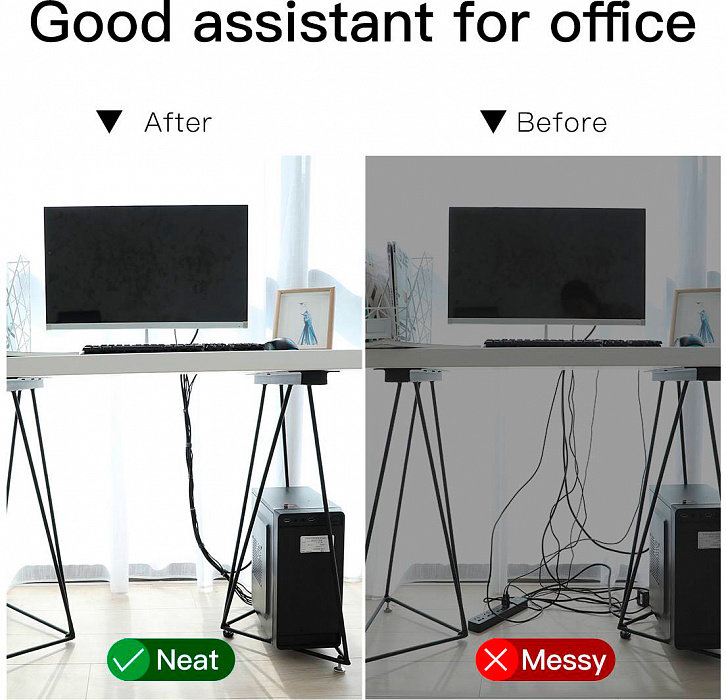 Возможность разрезать на фрагментыОрганайзер выполнен в виде ленты-липучки. Длина – 3 метр, однако вы можете отрезать от нее фрагмент нужной длины. Одной ленты хватит для связки большого количества проводов разной толщины |