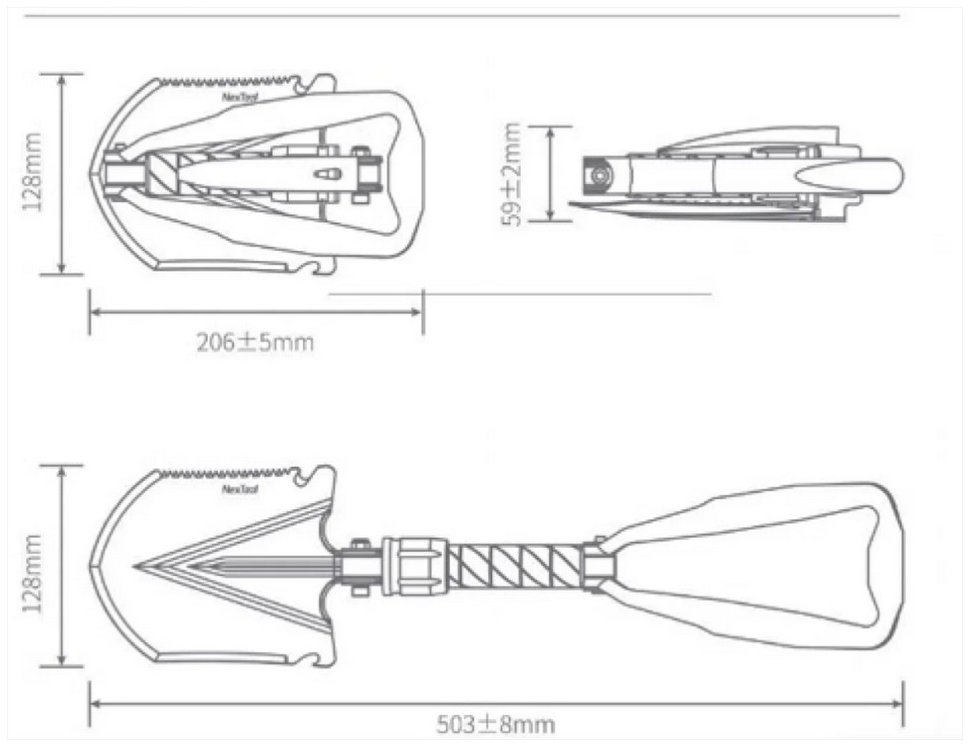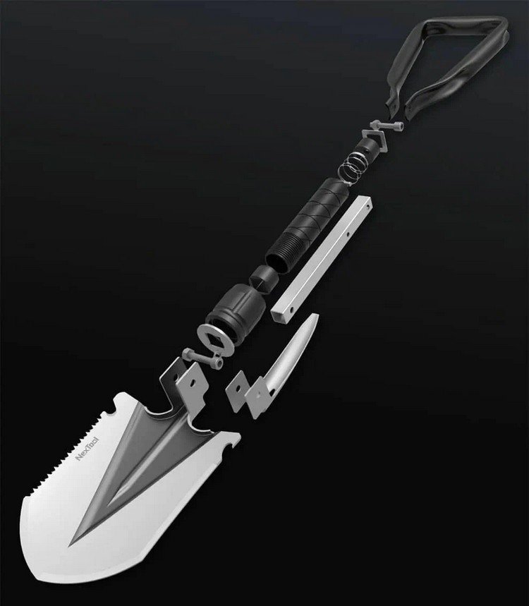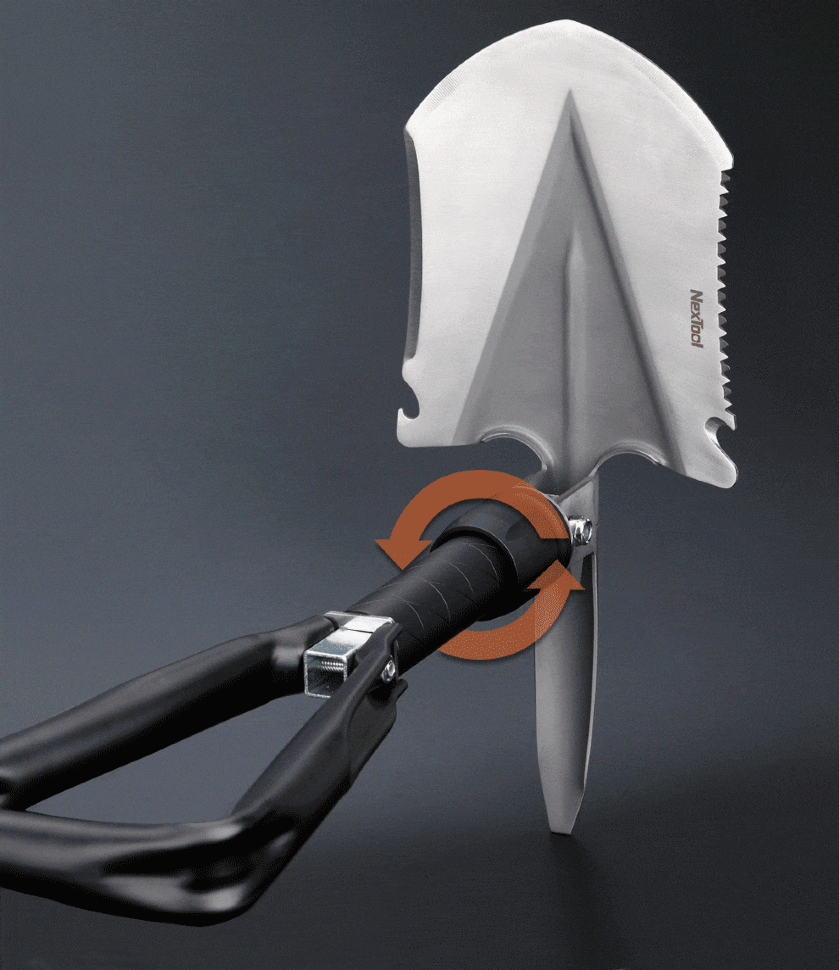 Система крепления устройства обеспечивает прочную и надежную фиксацию в выбранном положении без люфтов и разбалтывания. Многофункциональная лопата NexTool NE20033 состоит из трех сегментов и имеет общую длину 21 см в сложенном состоянии. Она может использоваться как лопата, мотыга, кирка, лом, пила, гвоздодер и даже для открывания бутылок |