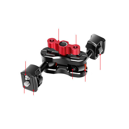 Magic Arm с двумя шаровыми головами позволяет устанавливать различные дополнительные аксессуары, такие как заполняющий свет или мониторы, на ваше оборудование и свободно их поворачивать или регулировать во время использования. Обе головы оснащены винтами 1/4" с фиксирующими штифтами и могут наклоняться на 180° или вращаться на 360°. Дополнительные точки крепления 1/4" на фиксирующей ручке и 3/8" на головах пригодятся для кабельных зажимов или прочих видов вспомогательного оборудования |