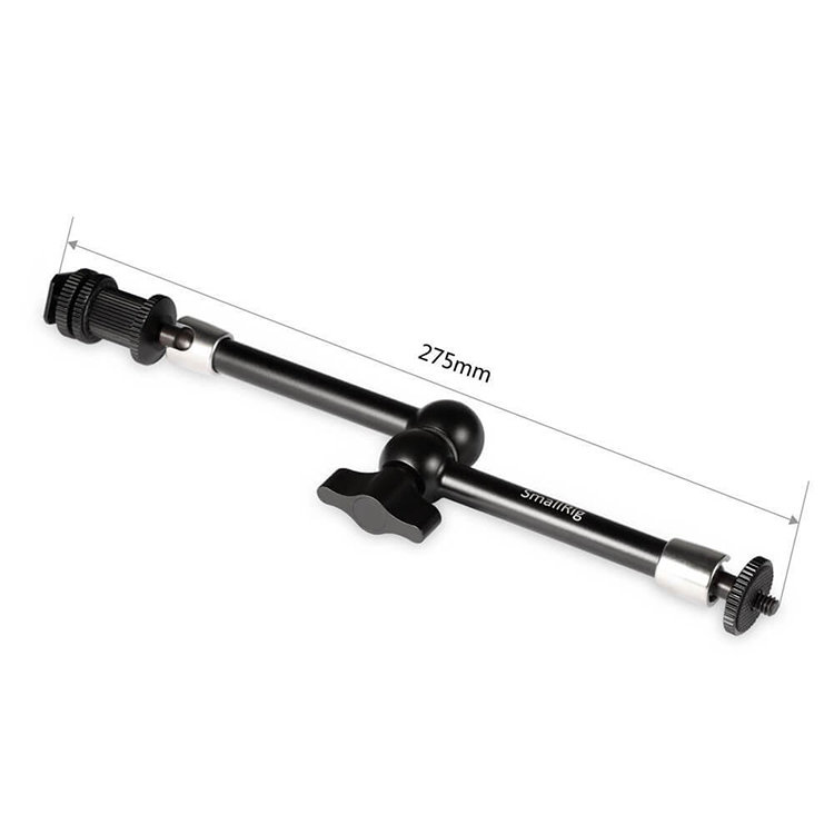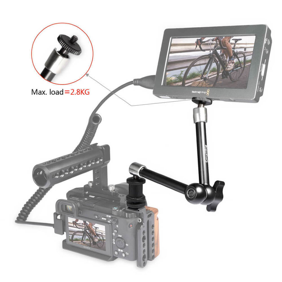 | Надежный кронштейн для крепления оборудования, имеет винты 1/4" на обоих концах с шаровыми головками, один из которых имеет предустановленный переходник на горячий башмак, значительно расширяя сценарии использования аксессуара. Рекомендуемая полезная нагрузка 1 кг, а максимальная заявленная 2.8 кг |